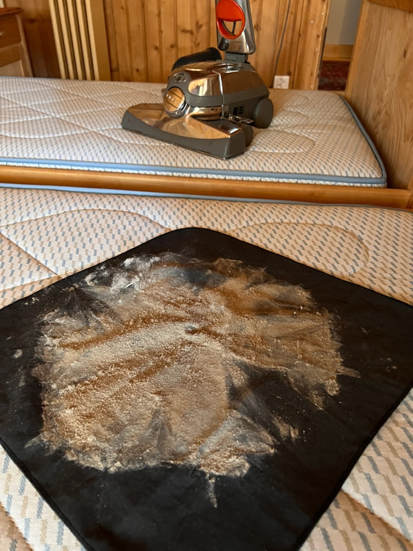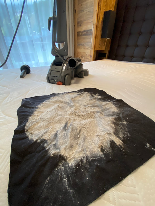 - Wir reinigen nach dem Standartverfahren d.h. ohne Wasser, mittels von einem Sauger erzeugte Vibration werden Milbenkot und Hauptschuppen gelöst und abgesaugt, dies erfolgt auf beiden Seiten der Matratze.